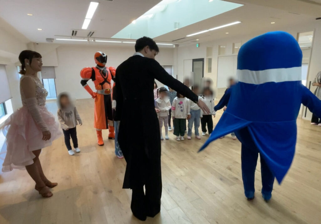 令和7年10月27日(月)、代々木上原の「西原りとるぱんぷきんず」にて、当法人によるキッズ社交ダンス体験会の第2弾を開催しました。メンバーは穐吉(あきよし)康典・河村みわ子・奥原さとみ・毛塚美穂の4名です。今回は年長クラスの子どもたちを対象に、2回に分けて行いました。